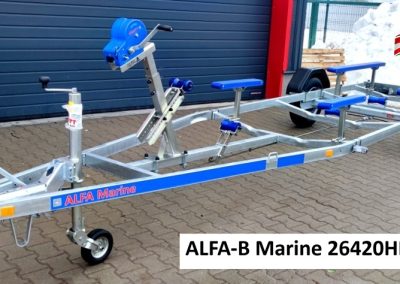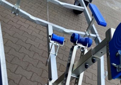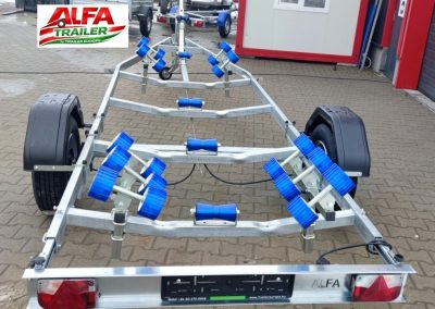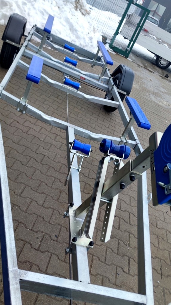 | Alapfelszereltség | Támasztókerék(F0008/F0033), csörlőtartó(TH0003-1),1150kg-s csörlő(F0119), 1db állítható hajógerincgörgő(TH0014), 3db fix vezetőgörgő(TH0011-1), 2db 1500x100x50mm(TH0024) és 2db 600x100x50mm(TH0018) kék műanyag borítású párnafa, 1000mm-l kihúzható,levehető lámpatartó | Támasztókerék(F0008/F0033),csörlőtartó(TH0003-1), 1150kg-s csörlő(F0119), 1db állítható hajógerincgörgő(TH0014), 3db fix vezetőgörgő(TH0011-1), 2db x 4db-s oldalsó görgő elől(TH0026) és 2db x 6db-s oldalsó görgő hátul (TH0027), 1000mm-l kihúzható,levehető lámpatartó |