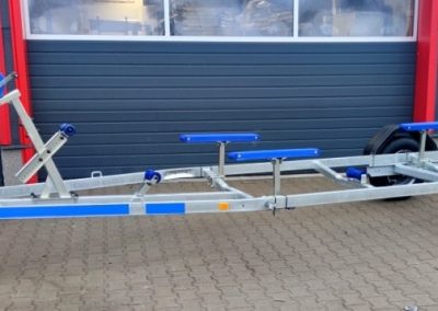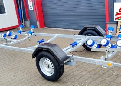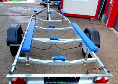 Ajánljuk 2m széles,max.7,40m/25láb hosszúságú csónakok és kishajók biztonságos szállítására. Az utánfutó, ráfutófékes rendszerrel van szerelve. Felszereltsége megegyezik a fényképen láthatóval.
