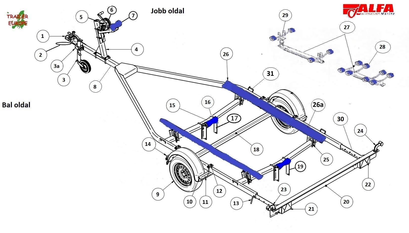 ALFA Marine sólyakocsik 6,60m/22 lábig