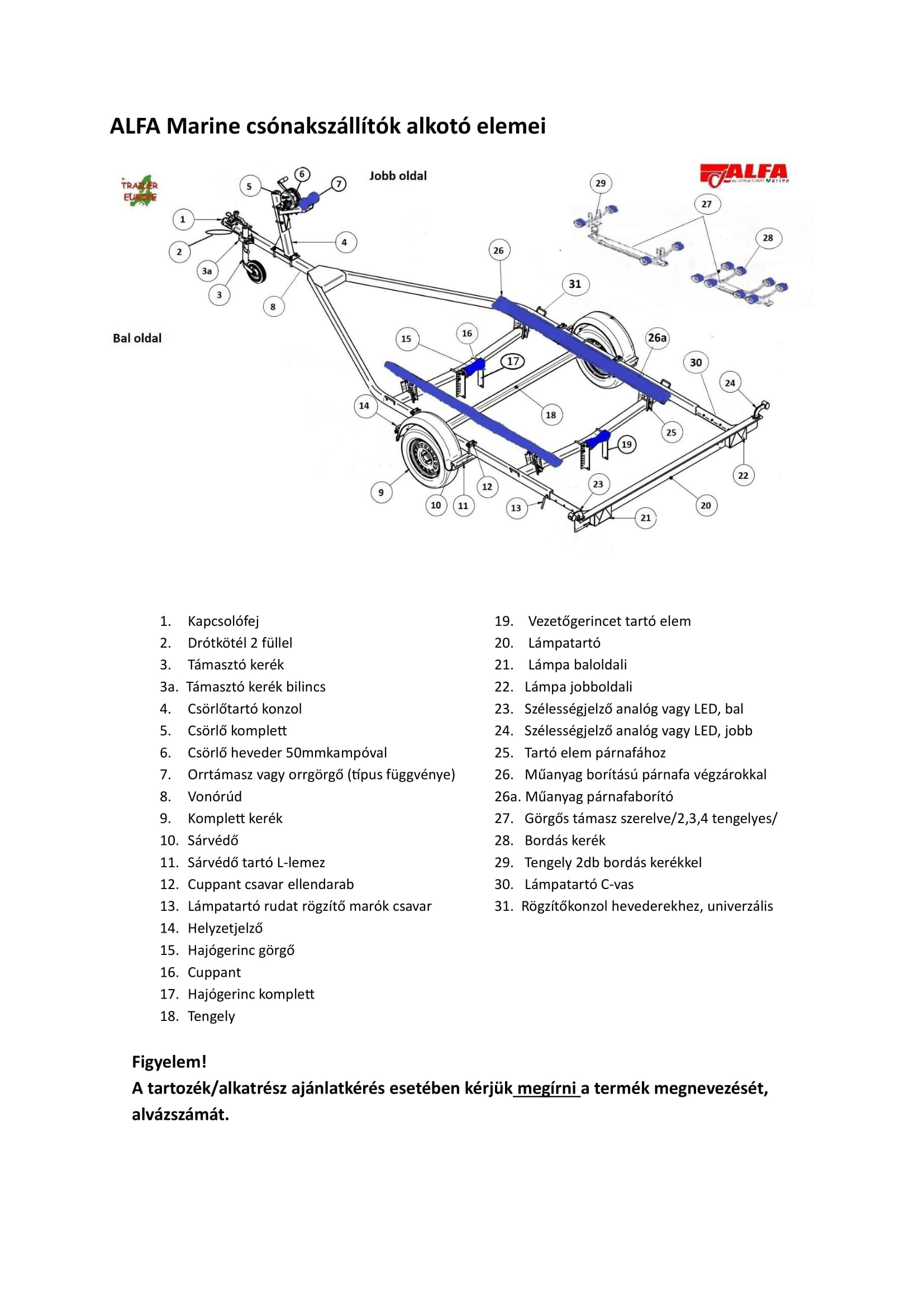 - lásd „Tartozékok ALFA utánfutókhoz”